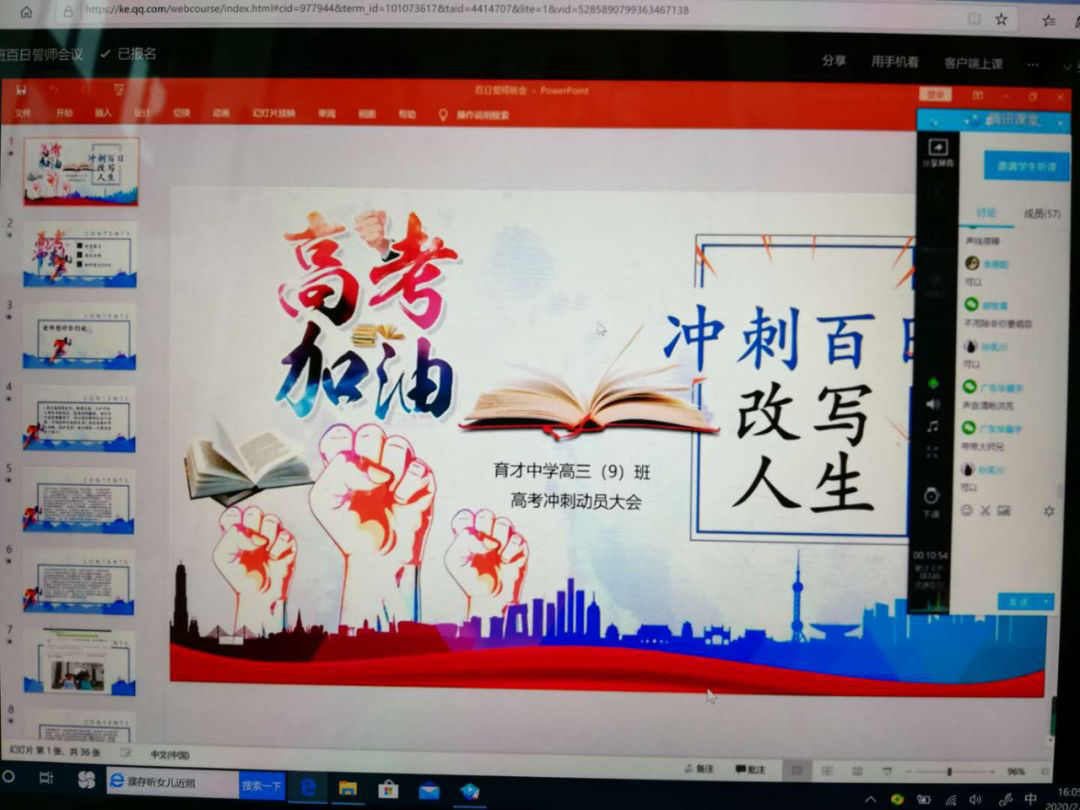 雖然受疫情的影響,我們延遲開學(xué),但高三學(xué)子奮斗的心從未停止。近日,育才中學(xué)高三年級14個(gè)班分別組織了線上百日誓師活動(dòng)。校領(lǐng)導(dǎo)的諄諄教誨,老師們的殷殷期盼,同學(xué)之間的相互加油,共同成就了高三年級百日誓師活動(dòng)的精彩。