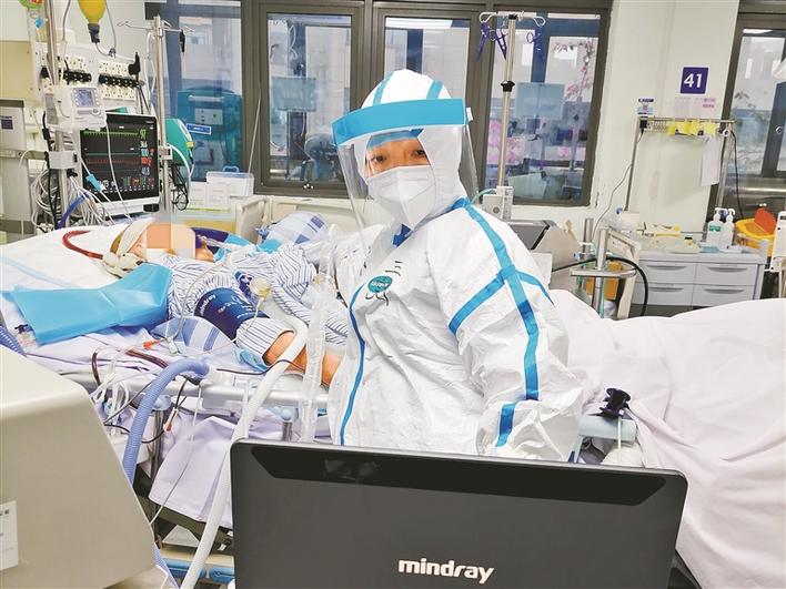 疫情早期,形勢嚴峻,隨著確診病人一批批收治,重癥病房很快進入超負荷狀態(tài)?!白罡叻宓臅r候,我們接診了40多名患者,整個ICU病房都住滿了。重癥、危重癥患者有個特點,就是病情變化特別快,一兩個小時病患的情況就差很遠,這就要求我們必須時刻嚴密監(jiān)測。因此,每次在班上,我都處于高度緊張的狀態(tài),不停地要去觀察分析各種數(shù)據(jù),要及時對患者治療進行調(diào)整,加上穿著厚厚的防護服,處于缺氧狀態(tài),有時候確實感覺到蠻累的?!倍@樣超速運轉(zhuǎn)的值班,一直持續(xù)了一個多月。
