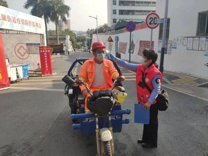 龔韻是龍華區(qū)衛(wèi)生監(jiān)督所衛(wèi)生監(jiān)督員,身軀嬌小的她,為加快速度,不讓司機(jī)下車耽誤時(shí)間,只好踮起腳跟,努力抬高身子,為司機(jī)測(cè)量體溫……