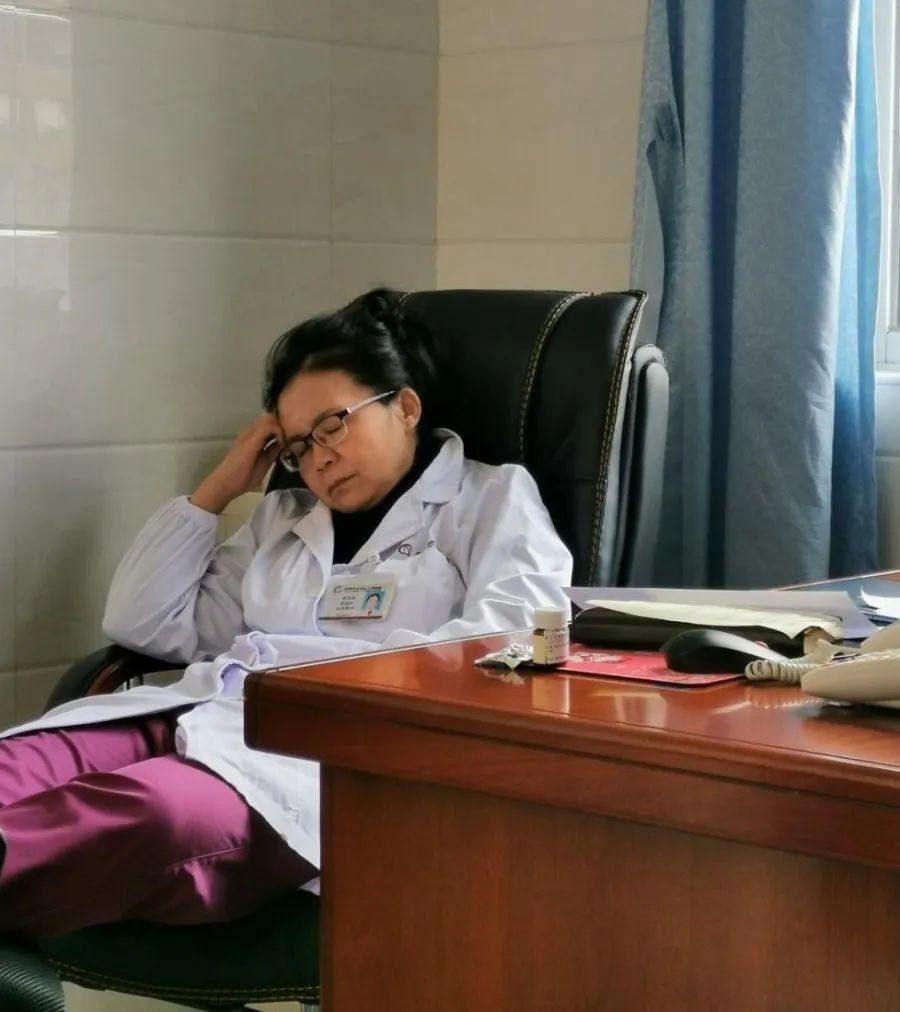 龍華區(qū)人民醫(yī)院感染性疾病科主任姜春梅負(fù)責(zé)發(fā)熱門診,是此次防控“戰(zhàn)役”龍醫(yī)的前線指揮官,今年49歲的她曾參加2003年非典、2009年甲流的防控工作。疫情期間,身體抱恙的她一直在打針吃藥,但仍在盡心安排防疫工作,工作間隙吃完藥的她,就這么靠在椅子上瞇一會(huì)。