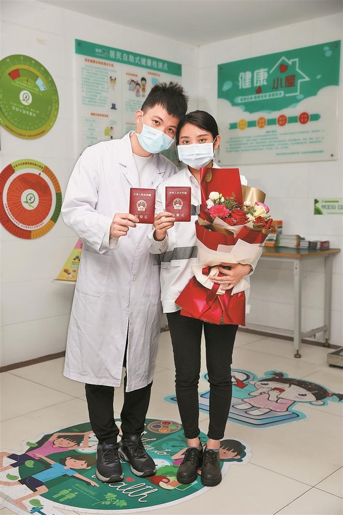 這對(duì)“90后”領(lǐng)證完婚后繼續(xù)戰(zhàn)疫