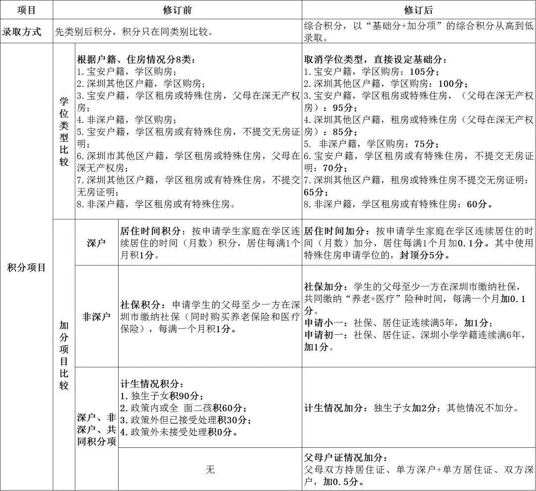 取消"非深戶籍可以以父母戶籍遷入深圳的時(shí)間計(jì)算積分"和"多子女就讀同所學(xué)校情況加分"兩項(xiàng)加分項(xiàng);