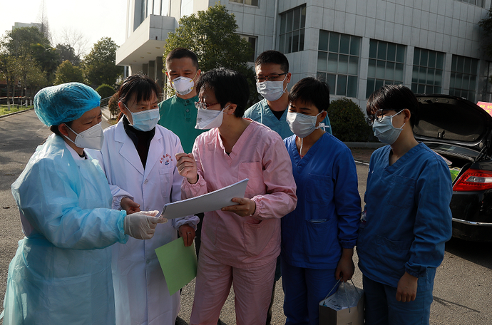 盡管隔離區(qū)里都是已經(jīng)符合出院條件的治愈病人,但要進(jìn)去,還是要跟進(jìn)入病區(qū)一樣穿戴全套防護(hù)裝備。在深圳醫(yī)療隊(duì)隊(duì)員的協(xié)助下,記者按要求穿上防護(hù)服、戴上護(hù)目鏡和兩層醫(yī)用橡膠手套,把自己從頭到腳包了個(gè)嚴(yán)嚴(yán)實(shí)實(shí),然后拿起專用的工作手機(jī),開始了到湖北以后防護(hù)等級最高的一次采訪。