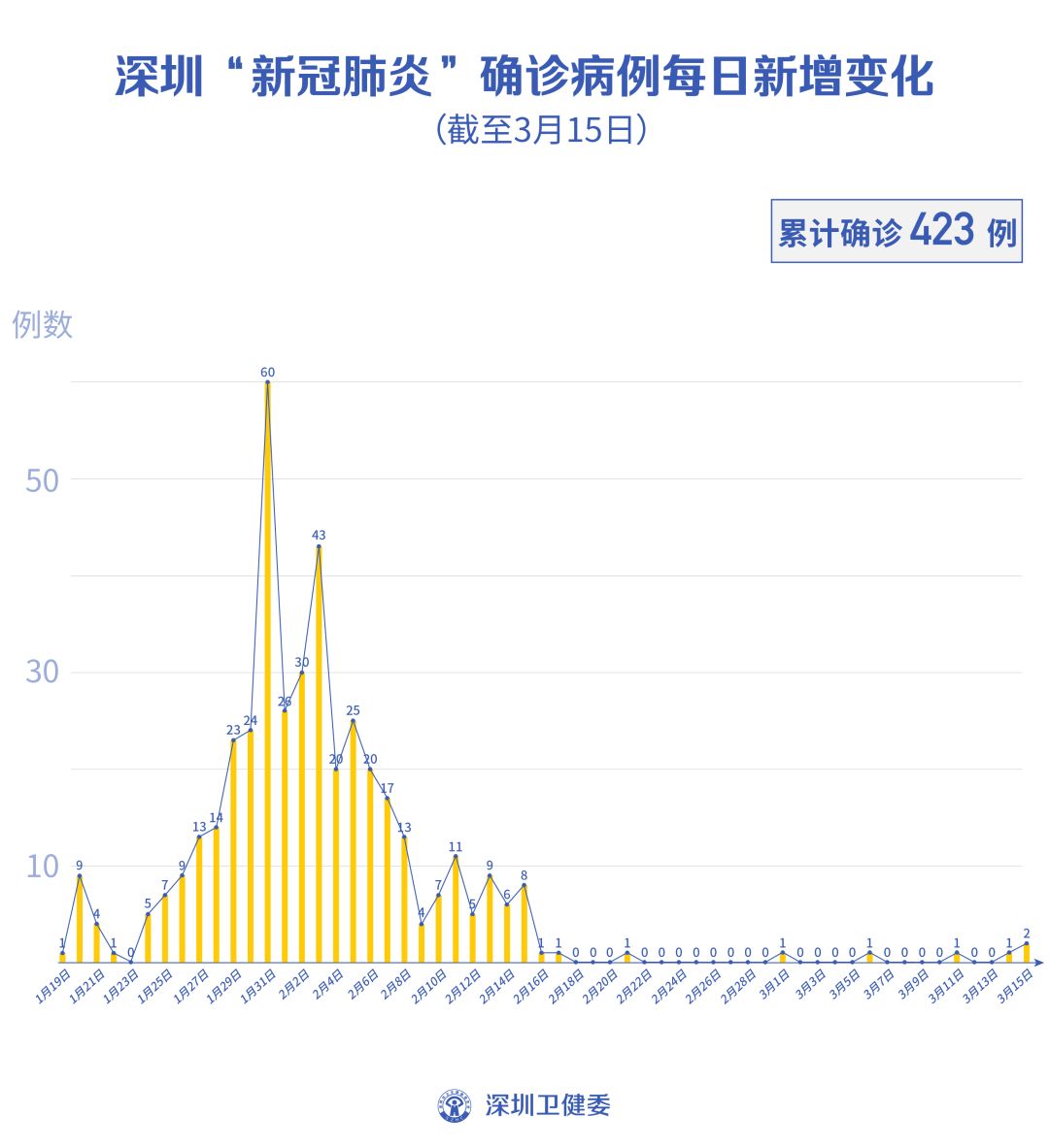 截至3月15日24時(shí),深圳累計(jì)報(bào)告“新冠肺炎”確診病例423例。3月15日當(dāng)天新增2例,出院2例。