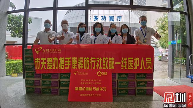 為表達對醫(yī)護人員的感謝,深圳市康輝旅行社捐贈價值6.2萬元的廣東省內(nèi)溫泉酒店免費入住券40張。每張入住券可在廣東省內(nèi)指定酒店入住雙床房或大床房?!耙咔槠陂g,我們康輝人一直都在為抗擊疫情獻綿薄之力?!鄙钲谑锌递x旅行社有限公司董事總經(jīng)理滿炎權告訴記者,在疫情前期,全國各地醫(yī)用物資告急。各地康輝分公司迅速自我組織、自籌資金,聯(lián)系在國外的康輝旅行社的領隊及導游購買大量醫(yī)療物資回國?!艾F(xiàn)在國內(nèi)醫(yī)療物資暫時不缺了,我們深圳康輝送給三院的醫(yī)護人員溫泉酒店入住券,希望他們在疫情結束后,能好好休息。”