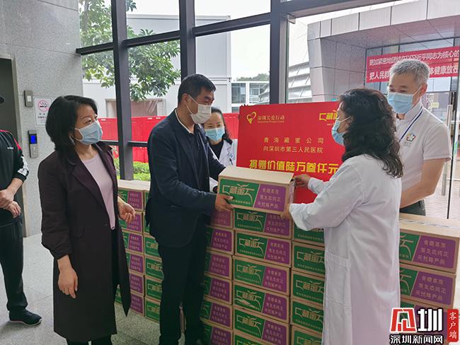 為了向這些最美的逆行者致敬,市關愛辦攜手愛心企業(yè)青海藏蜜公司與深圳市康輝旅行社,看望慰問一線的醫(yī)務工作人員。青海藏蜜公司向一線醫(yī)護人員捐贈1500盒青藏高原野花蜜,總價值6.3萬元。深圳藏蜜營銷管理有限公司總經(jīng)理王大鳴動情地說,抗擊疫情是一場沒有硝煙的戰(zhàn)役,牽系著所有人的心,因為醫(yī)護人員的日夜守護與付出,大家才能安心復工,照常生活。希望醫(yī)護人員能在勞累之余,泡上一杯蜂蜜水,增強抵抗力,緩解心里壓力,更好地續(xù)航戰(zhàn)斗。
