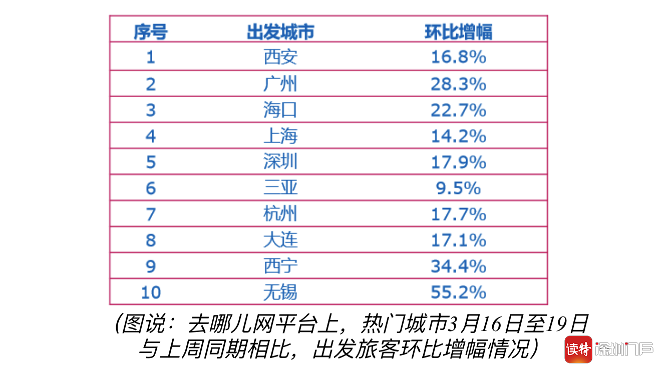 深圳特區(qū)報(bào)2020年3月19日訊 進(jìn)入3月中旬,隨著各地有序復(fù)工復(fù)產(chǎn),旅游行業(yè)也出現(xiàn)回暖跡象。去哪兒網(wǎng)數(shù)據(jù)顯示,本周五一假期搜索量環(huán)比上周增長76%。