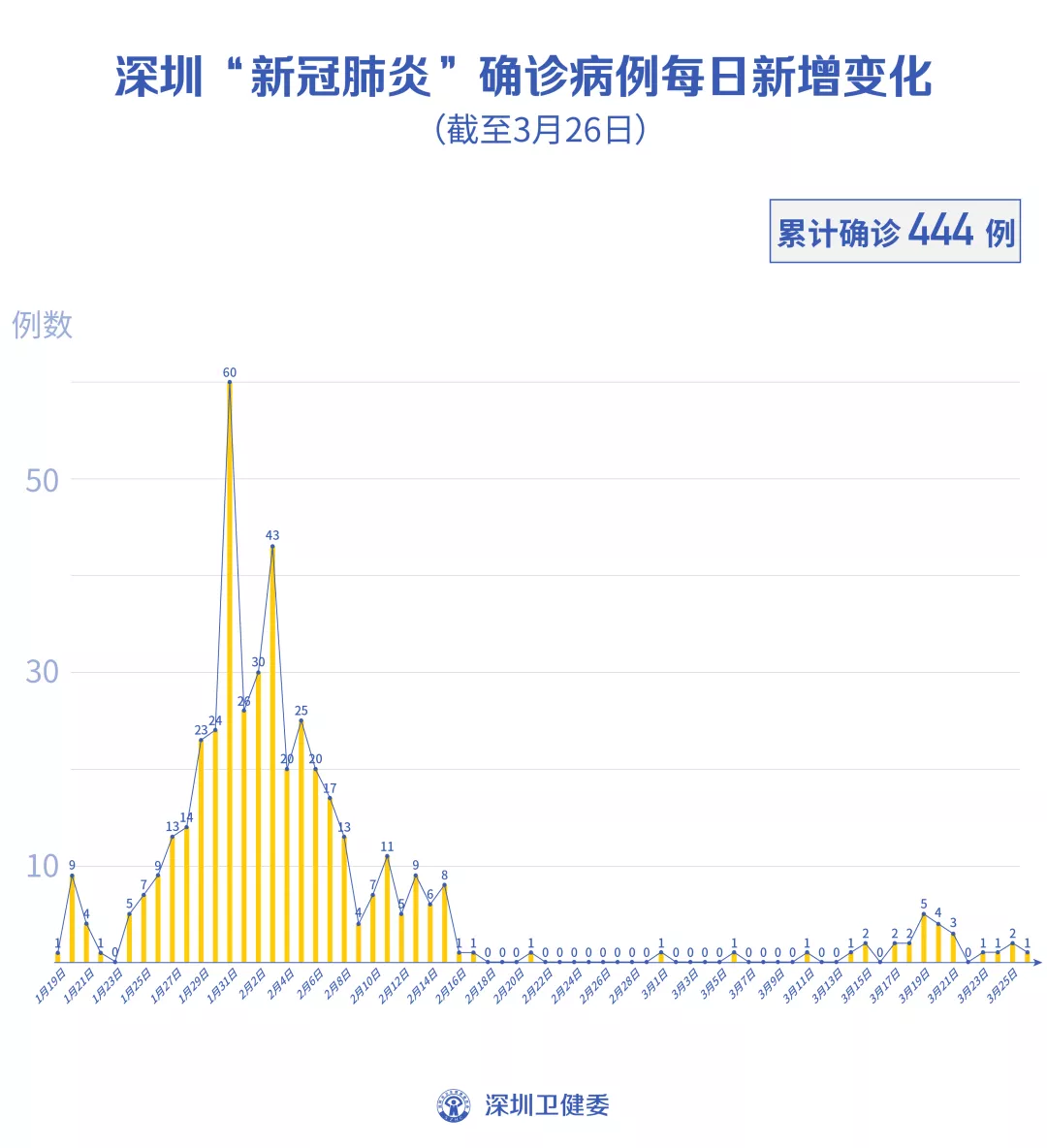 3月26日,深圳確診1例境外輸入“新冠肺炎”新病例,累計(jì)達(dá)27例。 截至3月26日24時(shí),深圳累計(jì)報(bào)告“新冠肺炎”病例444例。3月26日當(dāng)天新增1例,出院1例。 累計(jì)報(bào)告確診病例中,男性216例、女性228例。 目前,死亡3例,累計(jì)出院416例。 25例確診病例均在深圳市第三人民醫(yī)院隔離治療。 370名密切接觸者正在接受醫(yī)學(xué)觀察。 來(lái)源:深圳市疾控中心、深圳市衛(wèi)健委、廣東省衛(wèi)健委