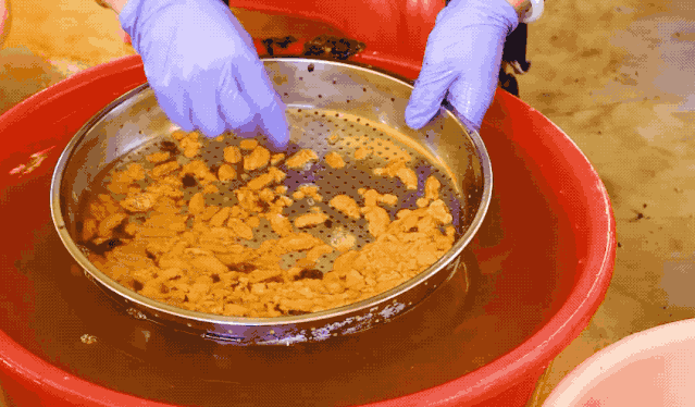 記者來(lái)到大鵬新區(qū)南澳海港路的潤(rùn)成海膽專賣(mài)店,看到工人們上下飛舞著鐵鉤“挖海膽”。南澳本地人口中所謂“挖海膽”就是海膽加工,打開(kāi)海膽殼,把海膽肉取出來(lái),然后用海水清洗干凈。從捕撈到上岸加工處理都必須一天之內(nèi)完成,只有嚴(yán)守時(shí)間的把控,爭(zhēng)分奪秒才配擁有鮮美和誘人的口感。