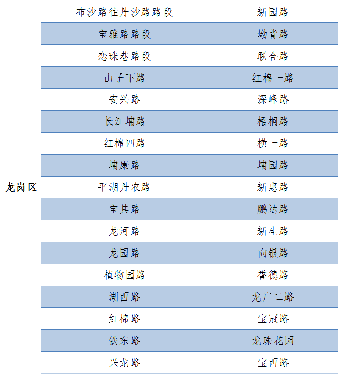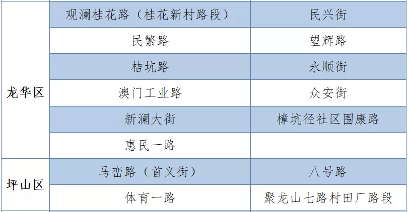 具體設(shè)置路段請(qǐng)看表格