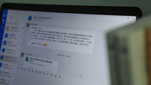 上午的直播課剛結(jié)束,周老師又開始處理起收集統(tǒng)計數(shù)據(jù)的工作。周老師的丈夫同樣也是一名教師,相比其他在家辦公的老師而言,雙教師家庭的教學設備就顯得緊張了起來,家里只有一臺電腦,如何兼顧兩個人使用呢?對此,周老師夫婦倆特意調(diào)整錯開了直播課的時間,盡量避免出現(xiàn)兩個人同時需要使用電腦進行直播的情況。但是,除了直播課,在家辦公的老師們,尤其是周老師這樣的班主任,還要使用電腦進行傳達通知、收集各種學生的信息、備課、批改作業(yè)等工作。有時候,雙方突然都收到需要緊急處理的事項,周老師夫婦只能比別的老師們更加快速、高效完成,兩人之間實現(xiàn)無縫銜接使用,才能不耽誤工作。