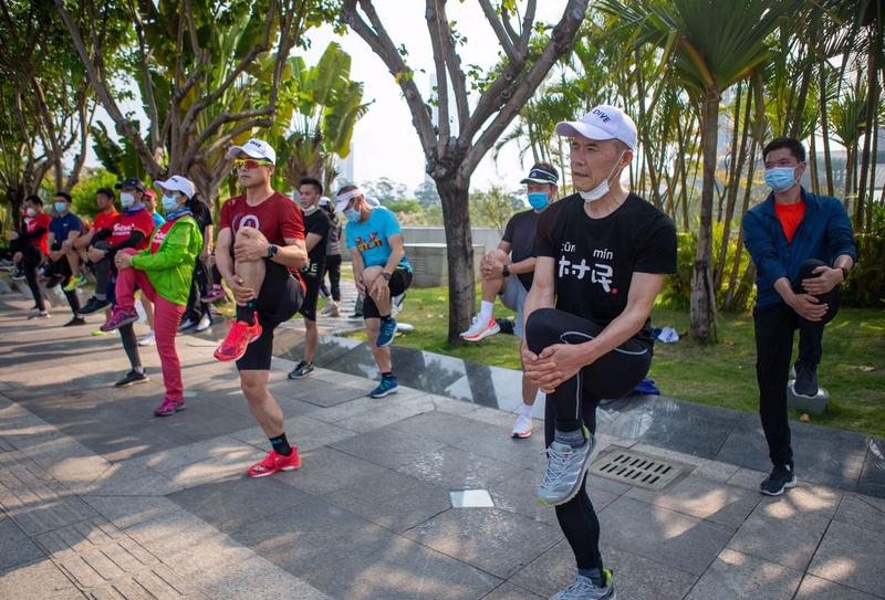 今天的登山活動(dòng),其實(shí)從蓮花山西門(mén)的跑步開(kāi)始的。不到十分鐘,王石等就達(dá)到了蓮花山頂,隨后從山頂下山,跑步3.5公里到達(dá)蓮花山與市民中心的連廊平臺(tái),在此完成拉伸后,整個(gè)登山和跑步活動(dòng)完美結(jié)束。