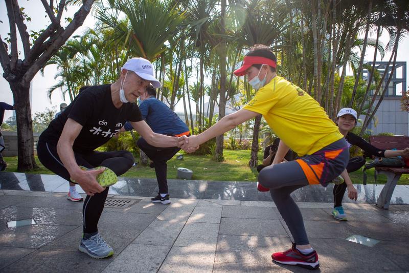 ▲跑后拉伸很重要哦。圖/賴?yán)?/p>