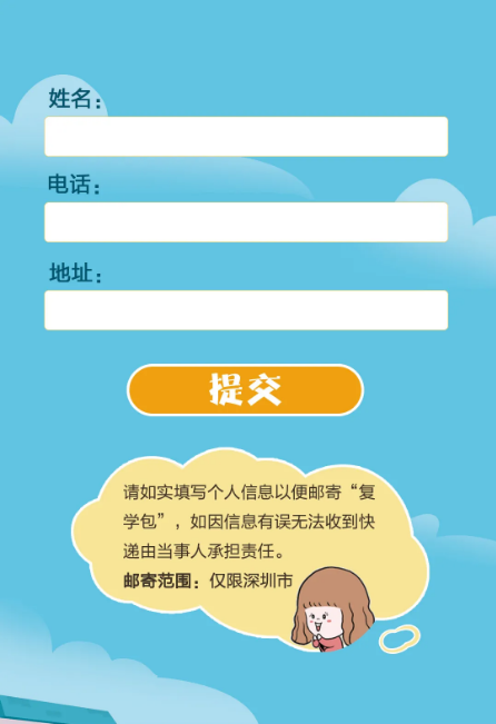注意!大家在填寫信息的時候一定要檢查檢查再檢查!如果信息填寫錯誤,可就收不到我們的復(fù)學(xué)包咯~