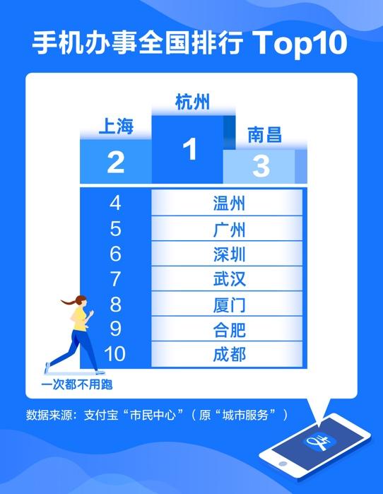 4月21日,支付寶“市民中心”發(fā)布的全國(guó)手機(jī)辦事排行榜顯示,已有超過300城的市民服務(wù)能在手機(jī)上完成。其中,杭州、上海、南昌等地的市民能在手機(jī)上辦的事最多。
