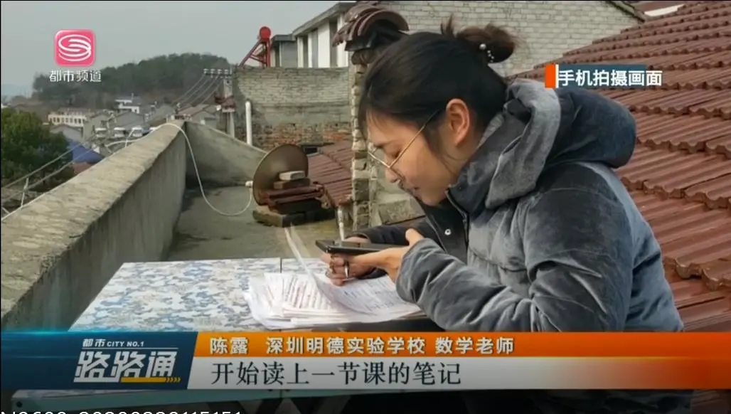 深圳中小學(xué)網(wǎng)課開課以來,廣大青年教師克服種種不利條件,變身教育主播,讓知識穿越屏幕直達學(xué)生心靈,深圳明德實驗學(xué)校的陳露老師就是其中一位典型代表。她因疫情滯留于湖北農(nóng)村,由于信號差,一開始為了錄制微課,白天她就帶好口罩跑到雜草叢生的山頂找信號,一塊木頭當?shù)首?,坐下慢慢等上傳視頻,頂著寒風一坐就是半天。線上教學(xué)正式開課后,由于設(shè)備和信號問題,陳老師只能采用QQ直播的方式給學(xué)生上課,為了保障語音效果,她把課堂搬到信號稍強的屋頂。上屋頂不是件容易的事,陳老師必須先爬一個陡峭的梯子,再匍匐穿過一個孔洞才能到達。一個天臺、一張折疊桌成了她的“三尺講臺”,一疊信紙成了她的“黑板”,一部手機成了她的“多媒體”。陳露老師每天坐在樓頂?shù)暮焙惋L雪中,堅持完成直播課,保證學(xué)生正常的線上學(xué)習(xí)。