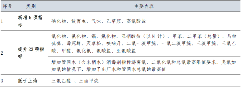 深圳市《生活飲用水水質(zhì)標(biāo)準(zhǔn)》與上海標(biāo)準(zhǔn)相比,增加了5項指標(biāo),提升了23項指標(biāo)(含消毒劑);附錄增加了18項指標(biāo),考核方法上提升了出廠水和管網(wǎng)水合格率要求,增加了嗅味物質(zhì)檢測,重點關(guān)注龍頭水水質(zhì)。