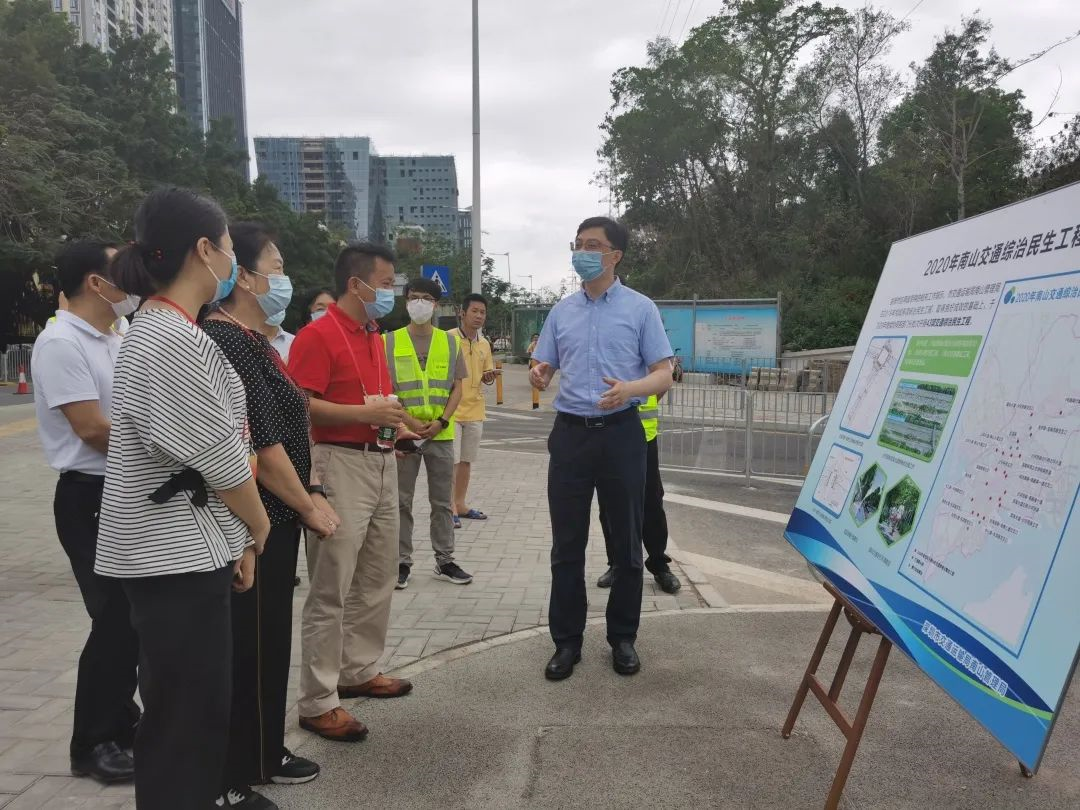 ▲體驗(yàn)結(jié)束后,在調(diào)研現(xiàn)場(chǎng),深圳市交通運(yùn)輸局南山管理局相關(guān)負(fù)責(zé)人向區(qū)人大代表們講解今年南山交通綜治民生工程。消息報(bào)記者肖佩攝