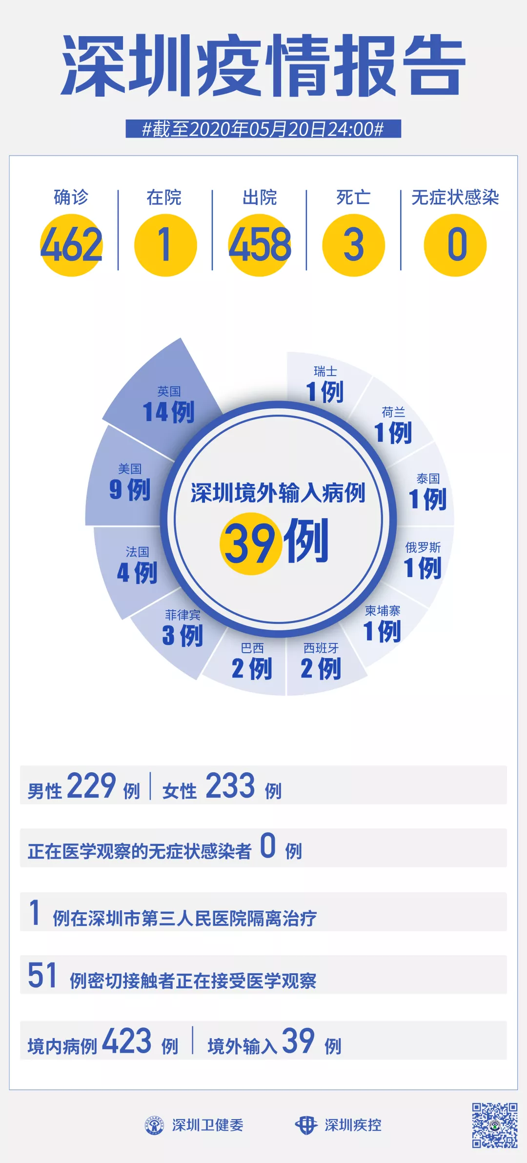 截至5月20日24時(shí),深圳累計(jì)報(bào)告新冠肺炎病例462例。