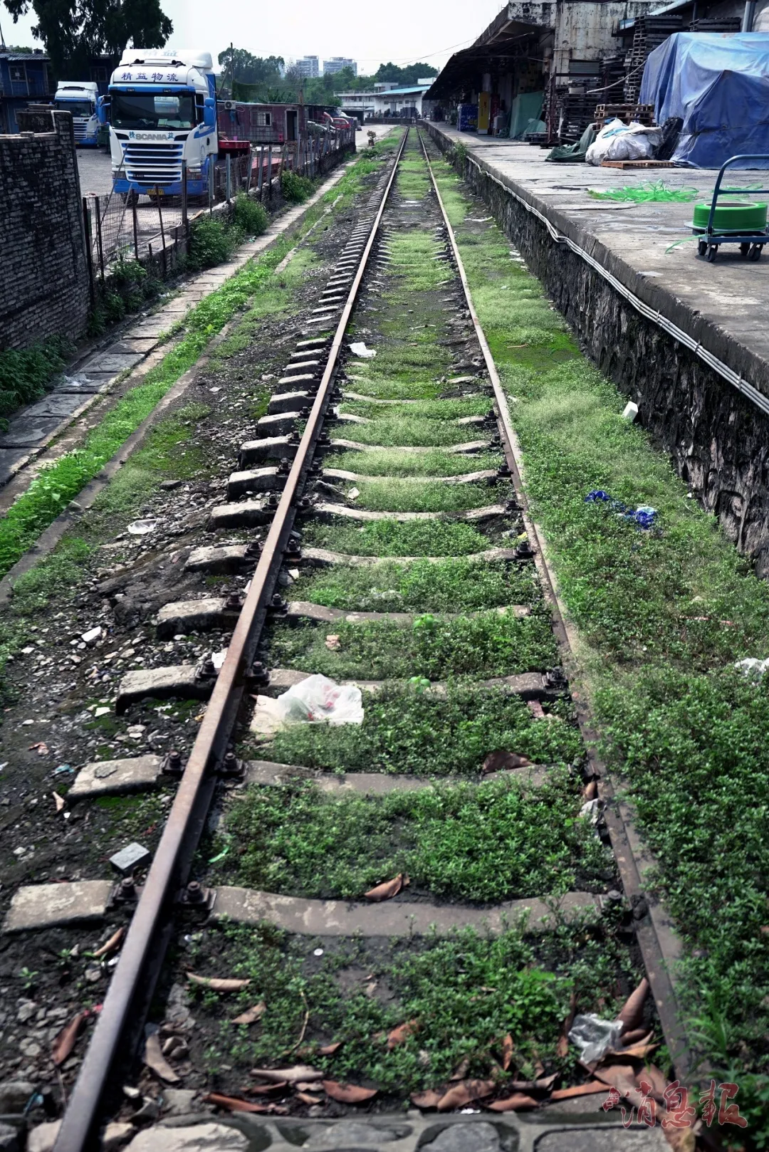 ▲一條貨運專線逐漸被綠植覆蓋,好久沒有列車駛過。