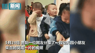 24日,貴陽一幼兒園小朋友正排隊(duì)等著扎手指采血。