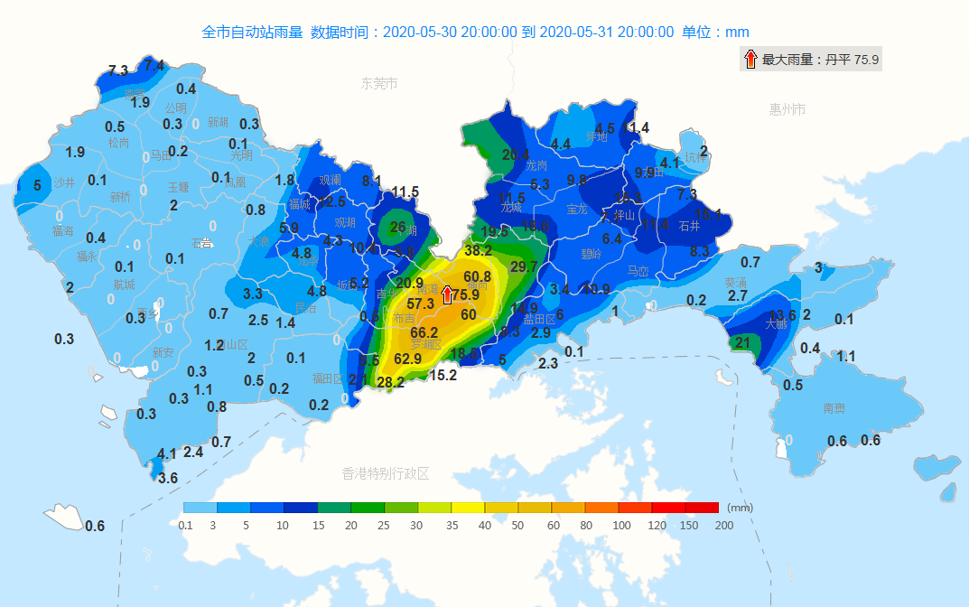 各區(qū)中平均雨量最大出現(xiàn)在羅湖區(qū)
