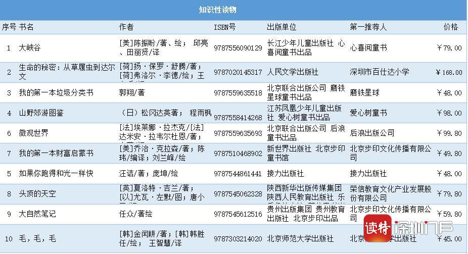 見圳客戶端·深圳新聞網(wǎng)2020年6月1日訊(記者 馬璇 通訊員 周知)第七屆“我最喜愛的童書”閱讀推廣活動自4月23日啟幕以來,全國34家單位強強聯(lián)手,共同打造國內具公信力、影響力的少兒閱讀推廣活動。經(jīng)過專家學者推選、網(wǎng)絡投票等環(huán)節(jié),30強圖書于6月1日火熱出爐。