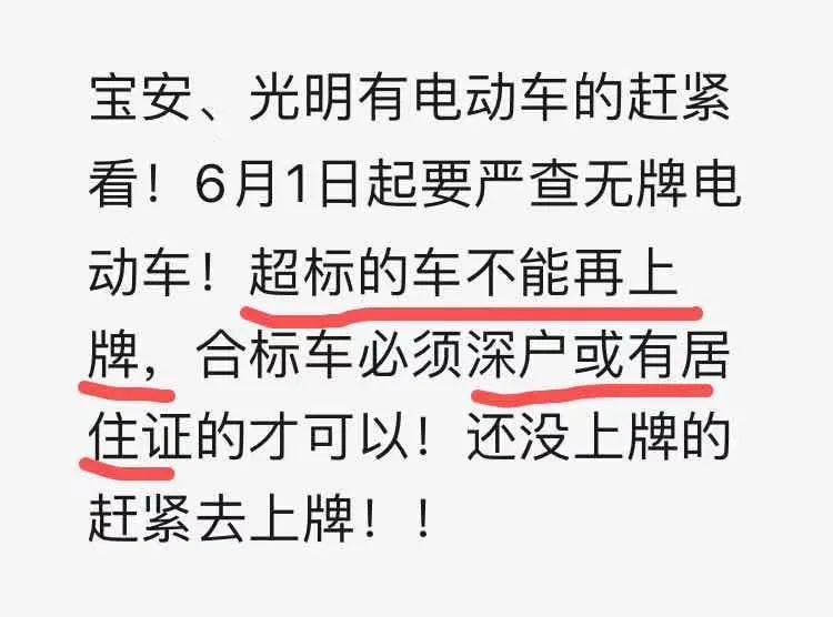 見圳客戶端·深圳新聞網(wǎng)2020年6月2日訊(見圳客戶端、深圳新聞網(wǎng)記者 鄭曉鵬)近日,網(wǎng)上流傳著這樣一張圖片,圖片上稱,6月1日起寶安、光明電動二輪車備案通道要關(guān)閉了。消息一出,便引起網(wǎng)友的廣泛關(guān)注“真的假的?”“那我的電動車還能上牌嗎?”“超標(biāo)車是什么車?合標(biāo)車又是什么車?”……記者從深圳市交警局獲悉,6月15日起,寶安區(qū)和光明區(qū)超標(biāo)的電動二輪車將不再予以發(fā)放黃色過渡期標(biāo)識;對于符合新國標(biāo)標(biāo)準(zhǔn)的車輛,市民持深圳戶籍身份證或居住證即可辦理電動二輪車備案,發(fā)放可長期使用的白色標(biāo)識。已備案的并發(fā)放黃牌標(biāo)識的車輛仍可繼續(xù)使用,過渡期至2021年12月31日。