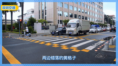 斑馬線兩側(cè)錯落有致的