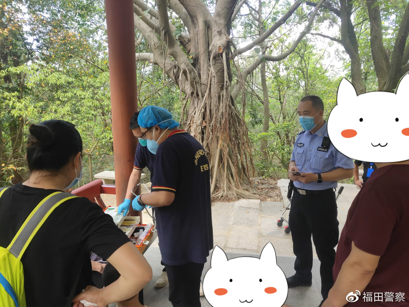 13時(shí)許,接派出所前臺指令,報(bào)稱一老人身體不適請求幫助后,民警立即趕到現(xiàn)場,協(xié)助120醫(yī)務(wù)人員進(jìn)行檢查。檢查完畢后,民警為老人遞上一杯水,并在確認(rèn)老人身體無礙后,將其護(hù)送下山。