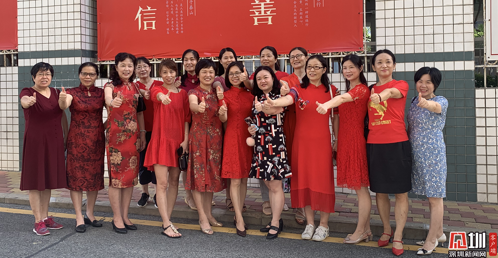 【深圳中學】身穿紅色旗袍的家長們預祝考生們旗開得勝。