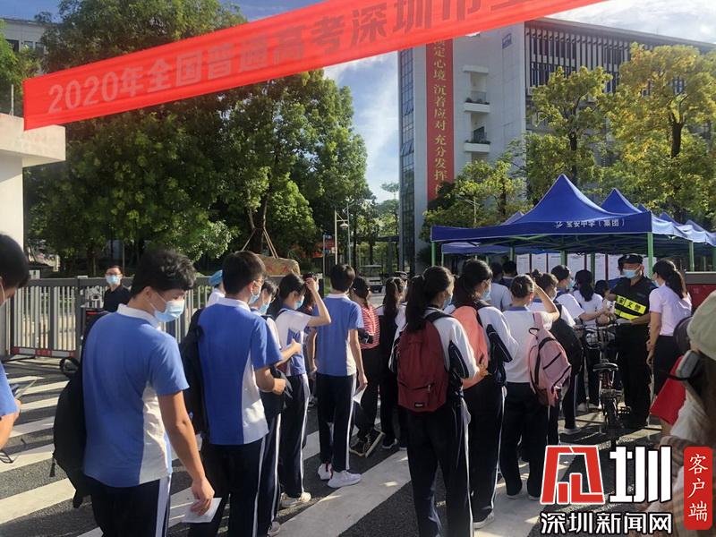 考生們有序排隊(duì),等待進(jìn)入考場(chǎng)。