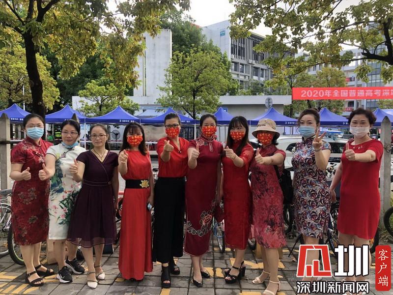 “以夢為馬,不負韶華,旗開得勝,馬到成功。”學生家長們身穿旗袍為孩子吶喊助威。