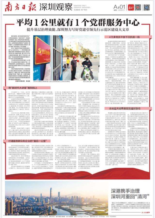 深圳市委組織部負(fù)責(zé)人在接受南方日?qǐng)?bào)記者采訪時(shí)表示,深圳將始終圍繞中心、服務(wù)大局,持續(xù)深化城市基層黨建“標(biāo)準(zhǔn)+”模式,進(jìn)一步提升基層黨組織的組織力和基層治理效能,走出符合超大城市特點(diǎn)和規(guī)律的基層黨建和基層治理新路徑。
