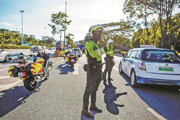 交警鐵騎隊員在烈日下穿梭于各種道路上。