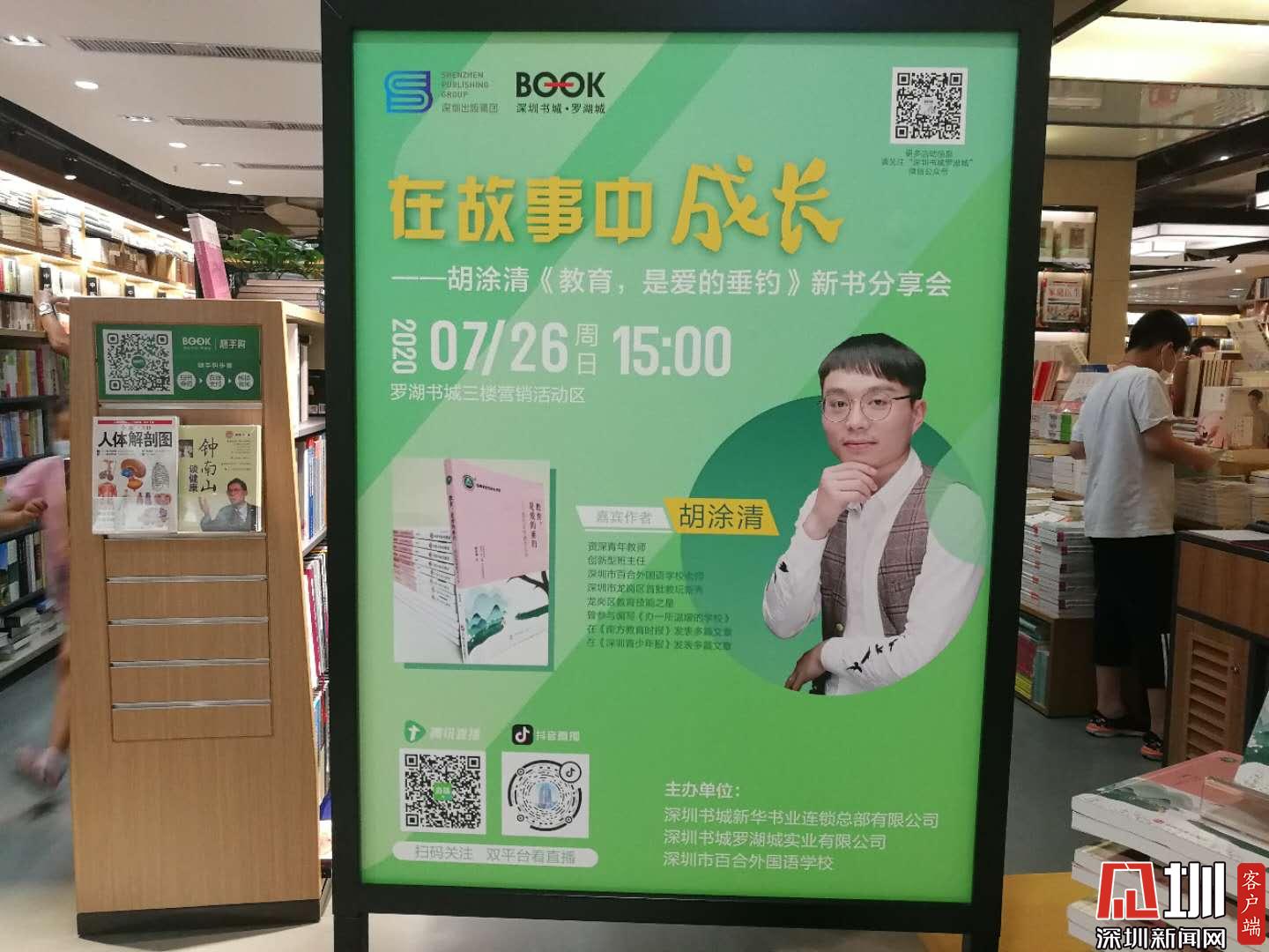 見圳客戶端·深圳新聞網(wǎng)2020年7月27日訊(記者 張玲 實習(xí)生 王舒蕾)在教育工作者的眼中,教育是什么樣的?7月26日下午3點,深圳市百合外國語學(xué)校胡涂清老師攜新書《教育,是愛的垂釣》做客羅湖書城,與讀者朋友們分享了任教經(jīng)歷的暖心故事和獨到見解。