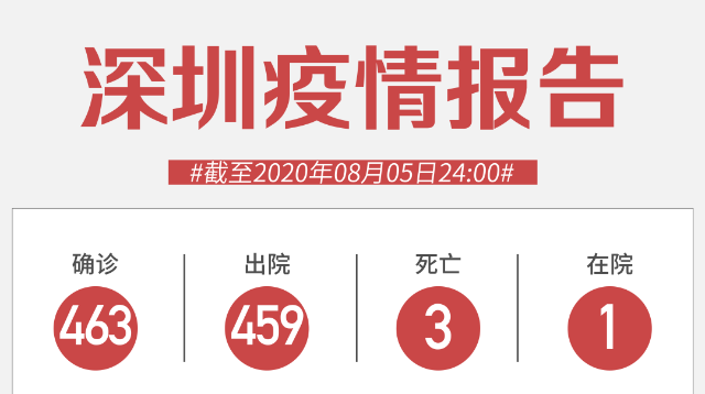 截至8月5日24時(shí),深圳市累計(jì)報(bào)告新冠肺炎確診病例463例。目前在院1例。