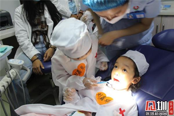 深圳新聞網(wǎng)訊(見(jiàn)圳客戶端、深圳新聞網(wǎng)記者 李慧 通訊員 楊紀(jì)歐)10月25日,羅湖區(qū)桂園街道老圍社區(qū)黨群服務(wù)中心組織社區(qū)青少年到醫(yī)院開(kāi)展了一場(chǎng)社會(huì)實(shí)踐體驗(yàn)活動(dòng),13位小朋友身穿白大褂,頭戴醫(yī)生帽,手拿口腔鏡,為“病人”檢查牙齒,當(dāng)了一回牙醫(yī),體驗(yàn)了當(dāng)醫(yī)生的快樂(lè),同時(shí)也感知到愛(ài)護(hù)牙齒的重要。3歲的劉嘉樂(lè)小朋友給姐姐看完牙齒后對(duì)媽媽說(shuō):“媽媽,姐姐有蛀牙。我以后也要好好刷牙。”