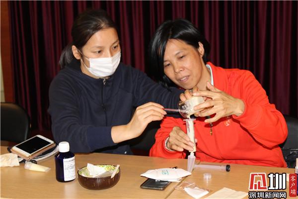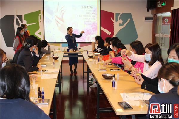 據(jù)了解,劉燦輝浸染芳香研究十幾年,有著豐富的芳療經(jīng)驗(yàn)。在課堂上,劉燦輝耐心地引導(dǎo)社區(qū)婦女在芳香中忘掉壓力和煩惱,體驗(yàn)愉快,開拓出精神力量。20位社區(qū)婦女還在老師的帶領(lǐng)下,動(dòng)手制作潤(rùn)手霜。大家相互幫助,彼此配合,經(jīng)過調(diào)試、攪拌、加熱、瓶裝等過程,每位學(xué)員都擁有了一支專屬于自己的潤(rùn)手霜。