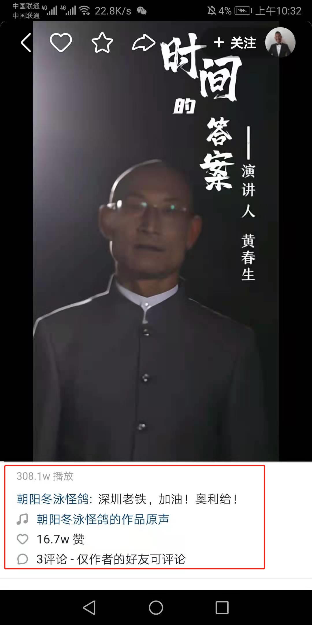 而奧利給大叔快手賬號(hào)中,給深圳獻(xiàn)詩的視頻播放量已超300萬!獲贊達(dá)16萬!
