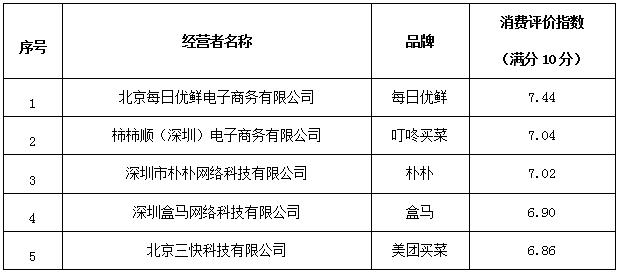 發(fā)布深圳地區(qū)生鮮電商行業(yè)消費評價指數(shù)排行榜