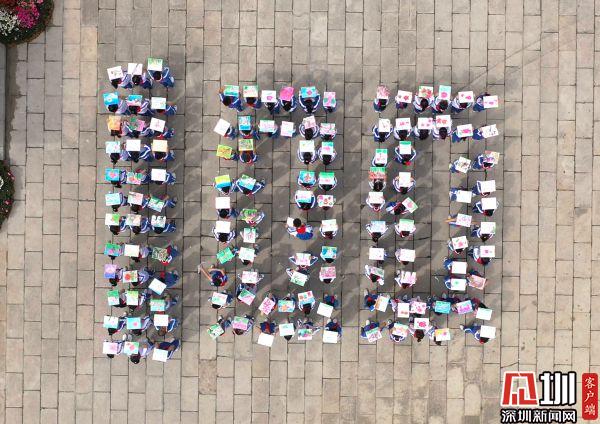 繪畫結(jié)束后,同學(xué)們興奮地向鏡頭展示他們的畫作,一幅幅精心繪就的畫作,給杜鵑花海增添了更多充滿創(chuàng)意的色彩。隨后,同學(xué)們在廣場擺出“100”字樣,向中國共產(chǎn)黨建黨100周年致敬。