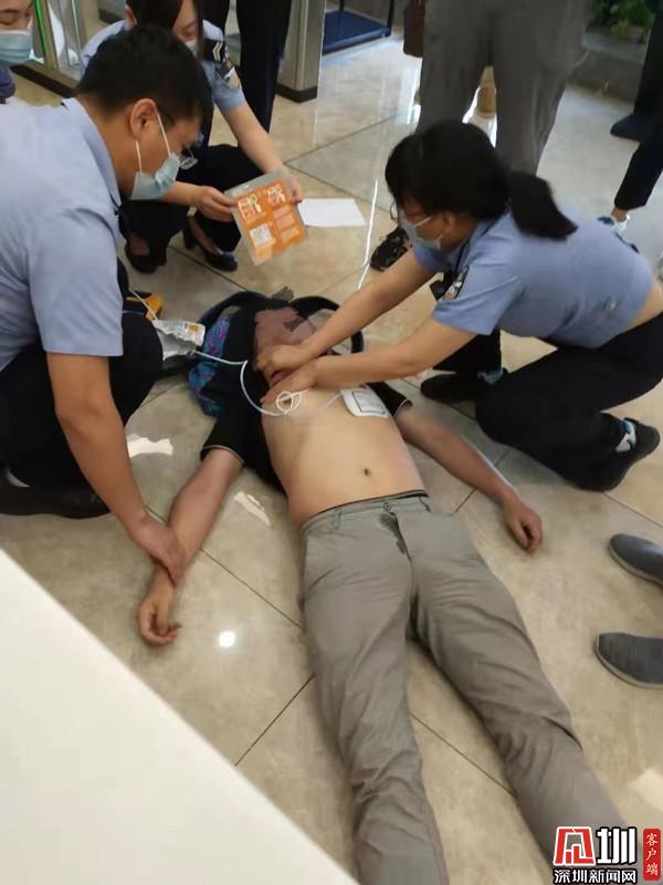 5月8日上午,市民韓先生及朋友李先生同行前往羅湖車(chē)管所處理個(gè)人交通違章業(yè)務(wù)。正當(dāng)兩人在車(chē)管大廳咨詢臺(tái)詢問(wèn)相關(guān)業(yè)務(wù)時(shí),韓先生突發(fā)身體不適,徑直癱軟在朋友李先生身上。現(xiàn)場(chǎng)值班民警陳瑞、李曉燕、楊濤發(fā)現(xiàn)該情況后,快速上前查看,只見(jiàn)該男子躺在地上,雙目緊閉、臉色發(fā)青、心臟驟停、呼吸微弱,在其耳邊連聲叫喊,也沒(méi)有任何反應(yīng)。