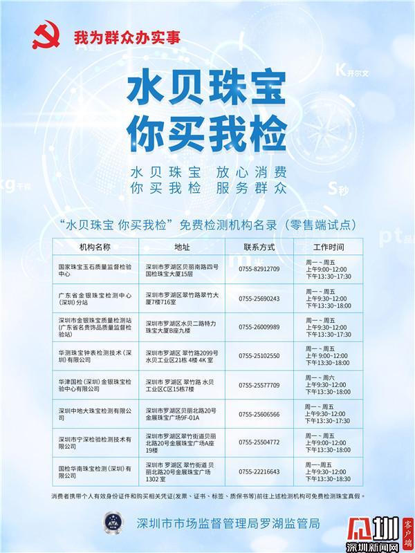 羅湖8家珠寶試點檢測機構名單。