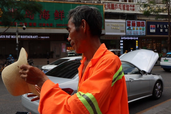 環(huán)衛(wèi)工人韓師傅接受了記者采訪時表示,天氣炎熱對他的工作有一定影響,但公司和自己都做了一定的防暑措施,自己也戴了大檐帽,套上防曬套袖,他也提醒大家,炎炎夏日多喝水,保護好自己。環(huán)衛(wèi)工人劉師傅則向記者表示,雖然單位準備了飲用水補給點,但今天暫時沒有找到,希望單位內(nèi)部能夠加強聯(lián)系和調(diào)動,及時讓環(huán)衛(wèi)工人補充到水分。