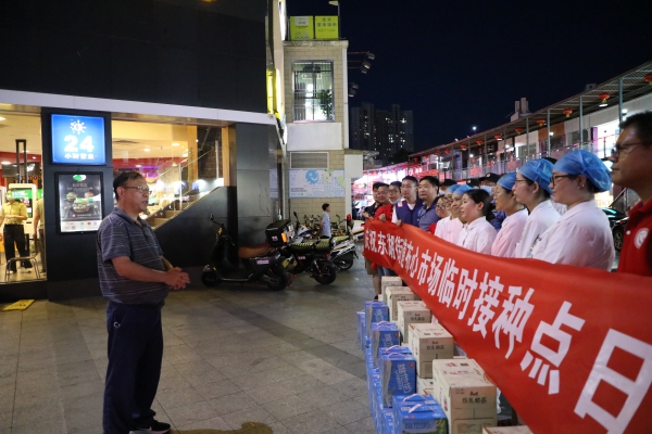 “大家辛苦了,感謝大家的辛勤付出!”在布心市場接種點,程時菊首先向全體工作人員致以誠摯的感謝,并叮囑他們要注意勞逸結合,做好自身防護。他強調(diào)全體工作人員面對艱苦的工作環(huán)境,沒有絲毫退縮,努力克服種種困難,始終以飽滿的熱情、昂揚的斗志,堅守崗位、加班加點、辛勤工作,每天圓滿完成了新冠疫苗接種清零任務。目前深圳疫情防控形勢嚴峻,希望大家繼續(xù)發(fā)揚攻堅克難、甘于奉獻的精神,全力加快新冠疫苗接種速度,為人民群眾的生命健康筑起堅實屏障。