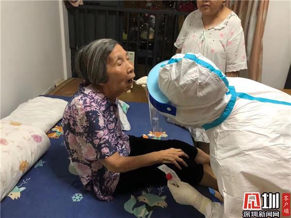 為進(jìn)一步方便群眾前來檢測(cè),各社區(qū)紛紛派出專車免費(fèi)接送年長(zhǎng)的居民群眾,在了解到社區(qū)內(nèi)還有多戶老人因?yàn)樾袆?dòng)不便等原因無法前往采樣現(xiàn)場(chǎng),社區(qū)工作人員立即會(huì)與醫(yī)務(wù)工作者“披甲”上陣,上門為老人進(jìn)行核酸檢測(cè)。