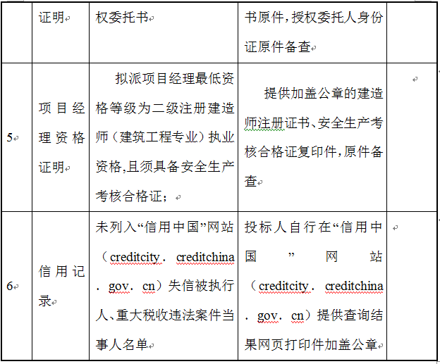 4、擬派項(xiàng)目經(jīng)理最低資格等級(jí)為二級(jí)注冊(cè)建造師(建筑工程專業(yè))執(zhí)業(yè)資格,且須具備安全生產(chǎn)考核合格證;