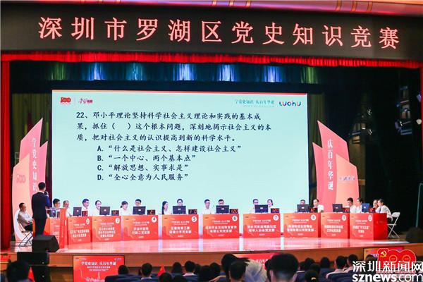 其中,線上海選階段,全區(qū)黨員干部群眾均可通過羅湖“掌上黨史學(xué)堂”“隨時(shí)學(xué)、隨地學(xué)、自主學(xué)、互動(dòng)學(xué)”,并通過個(gè)人和支部的實(shí)時(shí)排名及時(shí)檢驗(yàn)學(xué)習(xí)成果。經(jīng)過2個(gè)多月的比拼,線上答題成績(jī)前十強(qiáng)的隊(duì)伍晉級(jí)最終獲得本次線下總決賽的“入場(chǎng)券”。
