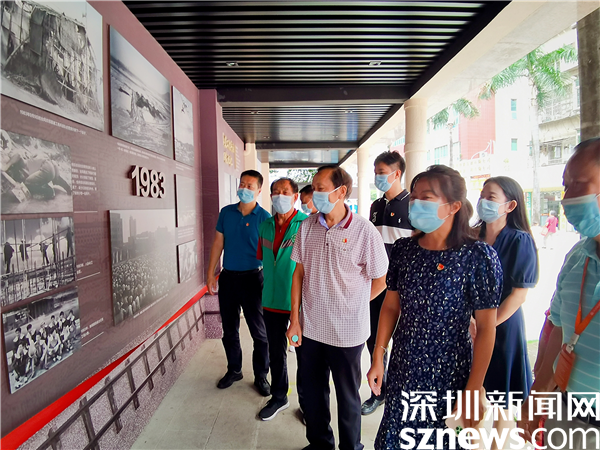 會后,吳愛華一行到紅崗西村廣場參觀了改造后的文化長廊,在老兵們的介紹下,吳愛華深刻感受到了老兵們當(dāng)年為深圳建設(shè)無私奉獻(xiàn)的愛國之情。她表示,文化長廊真正將深圳基建工程兵這個群體的拓荒史和不怕苦、不怕累、頑強拼搏、勇于奮斗的“拓荒?!本裾故镜昧芾毂M致。